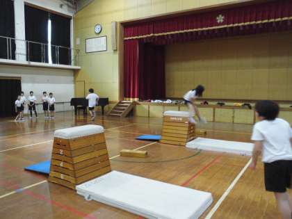 体育の学習で「とび箱運動」が始まりました。4年生では台上前転やかかえこみとび等,少し難しい技にも挑戦しています。