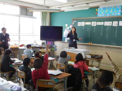 1年1組で、国語科の研究授業がありました。「だって だっての おばあさん」の学習で、おばあさんとの思い出について子ども達は一生懸命考えていました。みんなとてもよく頑張っていました。