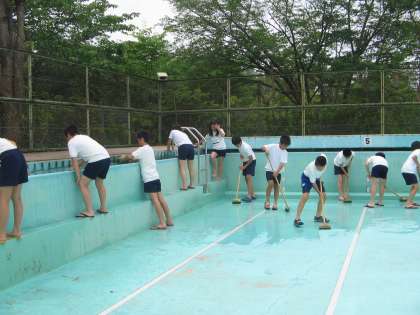 プールの中の汚れを落とす子・プールサイドをきれいにする子・プール周りの準備をする子など担任の指示をうけ,それぞれの分担をてきぱきとこなしていきました。