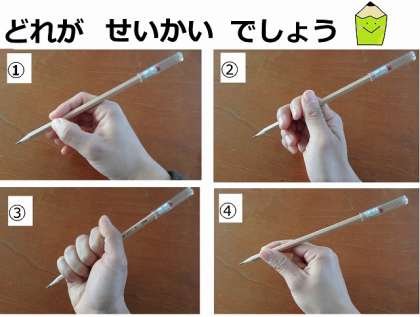 9日に学校で鉛筆の持ち方指導をしました。正しい持ち方ができている子も,うっかり別の持ち方なってしまっていることがあります。(2の持ち方をしている場合が多いです。)
