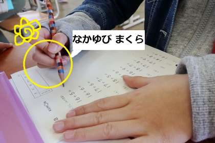 正しい持ち方は,国語の教科書p.14や,書写の教科書p.4にも載っています。また,お家でもようすを見てあげてください。