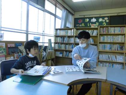 図書室で学習をしていると「つくし学級」のお友だちがやってきました。
