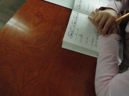 2年生の復習ドリルを使って学習している子がいます。