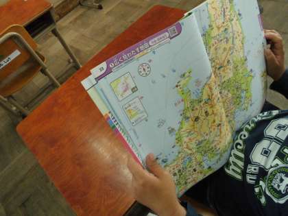 新しい教科書や地図帳を読みこんでいる子もいます。