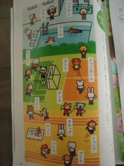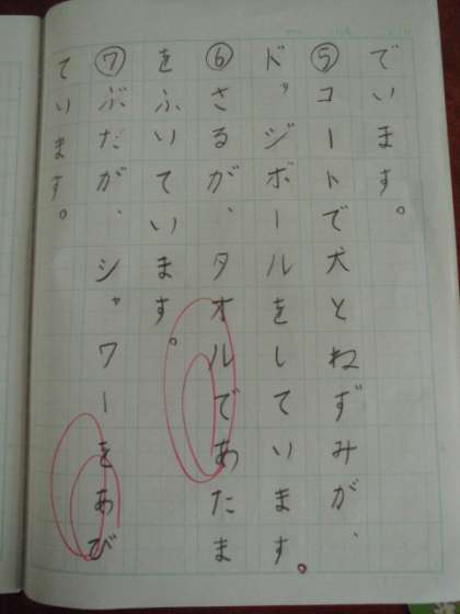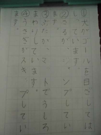 教科書に載っているかたかなを使って,動物たちがどんなことをしているか,ノートなどに書いてみましょう。