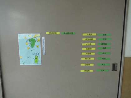 階段前踊り場を見れば,好奇心が抱きやすい工夫された学習クイズが掲示されていました。