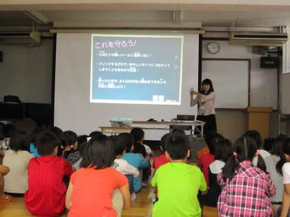 5年生は,ケータイのマナー違反・法律違反やいたずらメールの怖さ,ケータイの安全な使い方を,ケータイ安全事務局の方から教えていただきました。