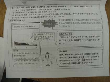 理科では「天気の変化」という単元のプリントを配布しています。