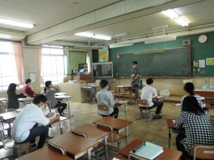 教職員で先生役と子ども役に分かれ,模擬授業研修を行いました。