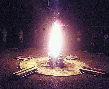 みんなを囲む美しいファイヤー。一つの炎をみんなで見つめ,歌って踊る。みんなの心も一つになり,仲間を感じる幸せな時間です。