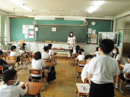 保健室についての話や感染症予防のための話をしました。