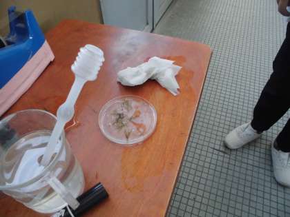 5年生の教室前でメダカの飼育をしています。水槽の中を観察しているとメダカのたまごを発見!早速,先生が顕微鏡でメダカのたまごが見れるようにセッティングしてくれました。ぜひ見てくださいね。