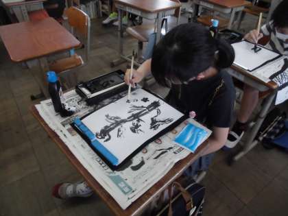 図画工作科「墨に表す」の様子です。