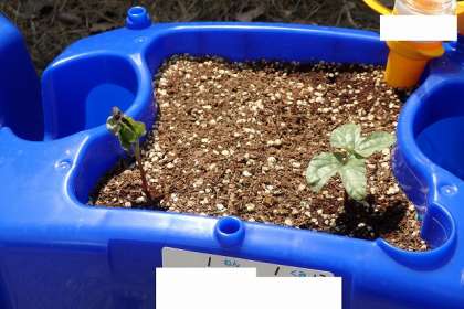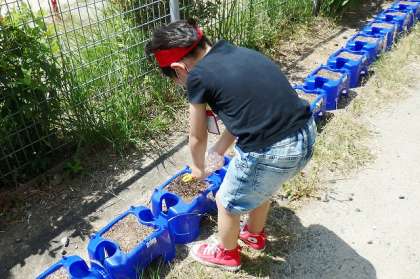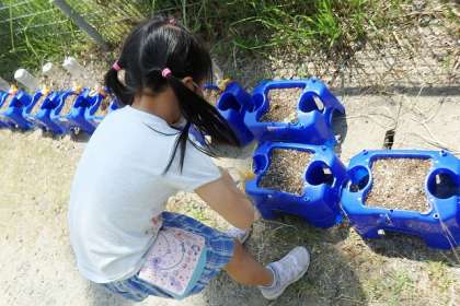 1組さんが種をまいて一週間……早いものは,もう芽が出始めています。