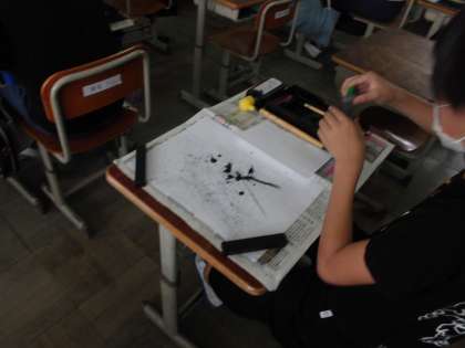 図工では,いろいろな道具の特徴を生かして自分なりの工夫を考えています。とっても楽しそうです。