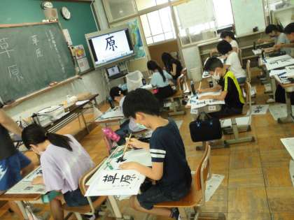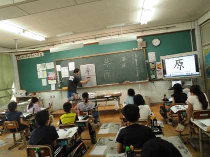 一画一画,筆の置き方や筆の進め方を指導しています。