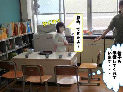 毎日の朝の会では,日直がお茶を入れてくれます。