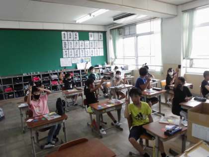 子ども達は,とてもノリノリで積極的に手を挙げたり,カラーカードを使って発表したりすることができました。