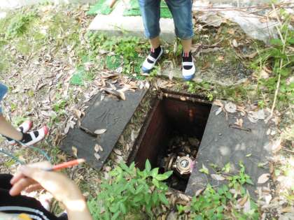 学校中を探検し,「水」についての疑問や気づきを増やしています。