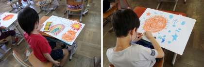 今日の図画工作では,おひさまの絵を描きました。