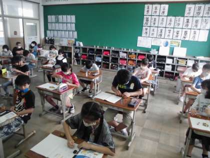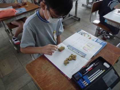 算数の学習で「体積」の学習をしている5年生。今までに学習した長さや面積の単位を確認したあとに「体積」について学びました。4年生の理科でも体積については学んでいたのでイメージもしやすく,とても意欲的に学んでいます。単位間違いなどに気をつけて体積の学習を深めていきましょう!