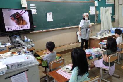 という,それぞれの日のメニューにぴったりのテーマです!先生のお話を聞いて,興味をもちながら給食を食べていました。