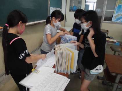 各係が活動を始めました。教室に行くとチェック係が提出物のチェックをしてくれていました。その他には,水筒や名札着用のチェックなどクラスのみんなのために頑張っています!
