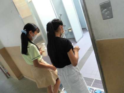 中間休みに1階から4階の手洗い場やトイレの石鹸を点検してくれていました。