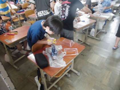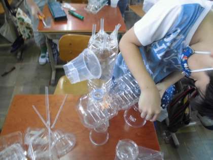 いろいろなパックを組み合わせて,どんな動物になるのかを考えながら友達とつくっていきました。それぞれ工夫をして思い思いの形を作っていました。