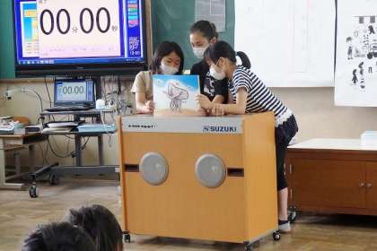 6年生のお姉さんたちが,休み時間に紙芝居の読み聞かせをしに来てくれました。係活動の一環のようです。