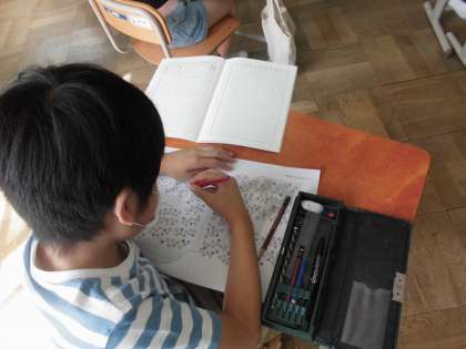 たくさんの星の数を,10のまとまりや100のまとまりに分けながら数えると数えやすいことをみんなで話し合いながら明らかにしていきました。2年生では,できるだけたくさんの子どもが発言でき,活躍できるように先生が問いかけ方を工夫しています。一生懸命学ぶ姿がよく見られました。