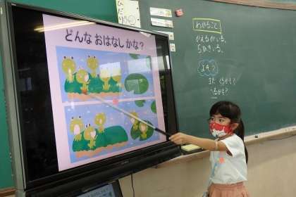 教科書の挿絵から,たし算とは数に関係するものの動き方が違うことを確かめました。