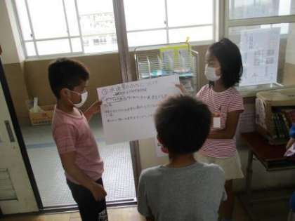 今日の社会科では,3つのテーマに分かれて調べた内容をポスターセッション形式で発表しました。テーマは 1琵琶湖の清掃,2水質検査,3水漏れ調査です。資料から読み取った内容を他のグループに発表しましたが,その上手なこと。発表側は落ち着いた態度と聞こえる声で,聞く側も発表の内容を一生懸命メモ書きする姿が見られ,とても素晴らしかったです。また機会があればチャレンジしたいですね。