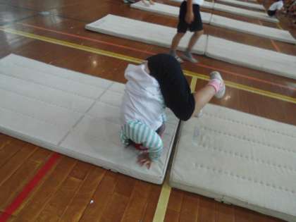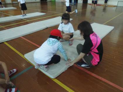 3年生の児童や先生に教えてもらって,前転が上手になりました。