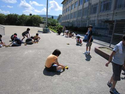 子どもたち一人一人の車の動き方が違うので,速く動くようにしようと工夫する子どもたちでした。