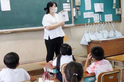 身体計測の前には,養護教諭から怪我をした時の対処法についてお話を聞きました。鼻血が出た時は小鼻を押さえて……,血が出た時は水でよく洗って……。