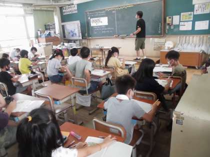 並行や辺の長さが等しいことを利用して,平行四辺形をしきつめ,連続模様を作る活動をしました。色のちがう紙を並べるときれいに見えるので楽しみながら作ることができました。