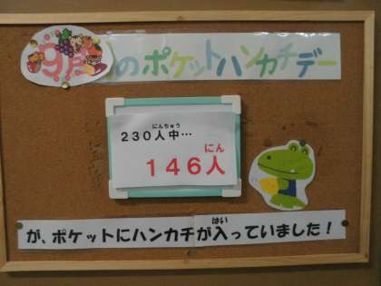 少しずつ感染症対策をしながらの日常生活に慣れてきていますが,はんかちを持ち歩く習慣が定着していない人もいます。