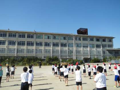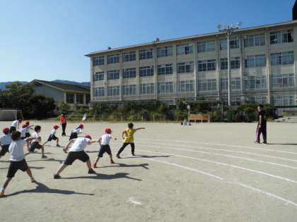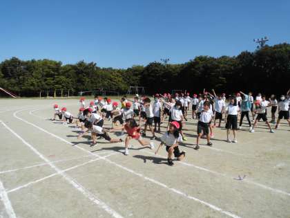 体育学習発表会に向け,運動場でも音楽を流しての通し練習をしました。