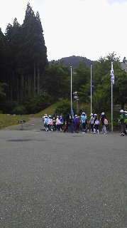 5年生は,花背山の家での入所式を終えて,今日の活動場所である百井キャンプ場へ足取りも軽く出発しました。