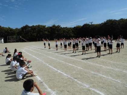 今日の体育はいつも合同で踊っている4年生に観客になってもらい,