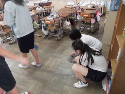 6年生教室の掃除チームの「ぞうきん」が意欲的です。