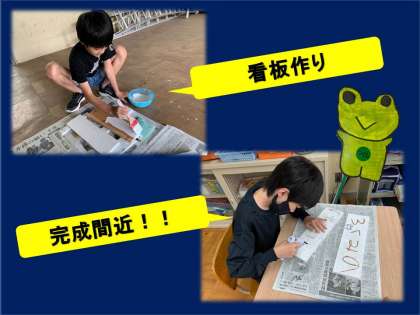 上里小学校にお礼をしようということで看板を作っています。