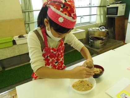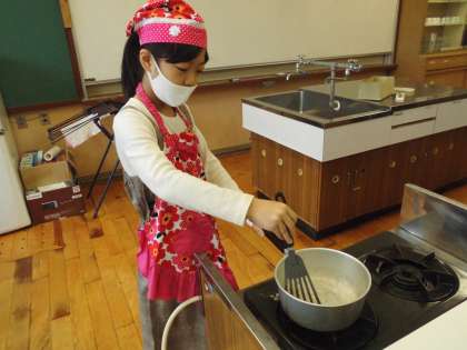 わらびもち作りにチャレンジしました。手順書を見てひとりで作っていきました。コンロに火をつけるときは,うまくつかずに,何回もチャレンジして頑張り,つけることができました。自分が作ったわらびもちは,とてもおいしかったそうです。
