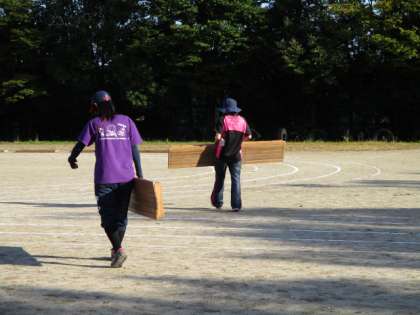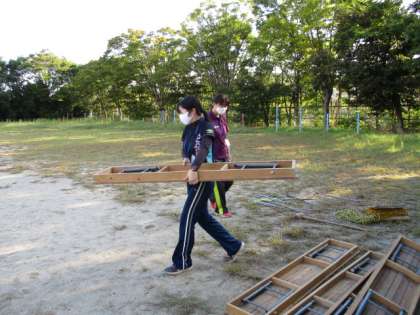 放課後に教職員で準備もしました。長椅子を運んだり,本部のテントを設置したり,みんなで協力して準備を進めました。