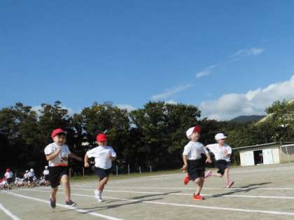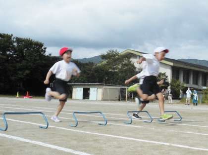 50m走やバラエティ走では,友だちと並んでダッシュ!最後まで全力で走り切りました。