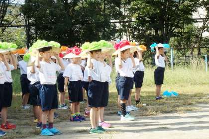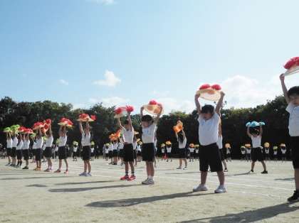 花笠ロックは,手をシャンと伸ばして決めポーズ。みんなでリズムをそろえて,楽しんで踊ることができました。