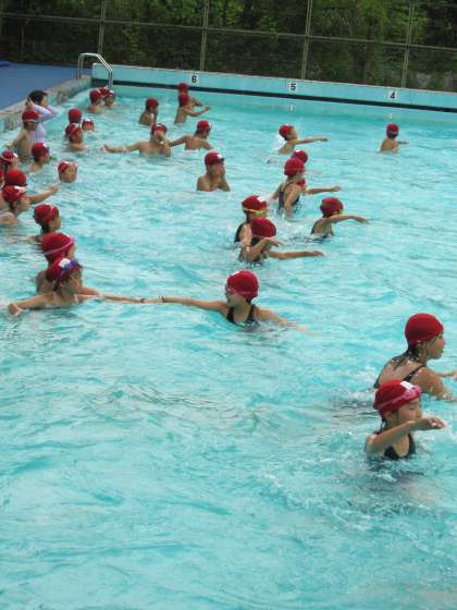 気持ちのよい水温に子どもたちは笑顔で水泳を楽しんでいました。