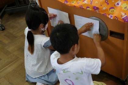 友だち同士で「その模様,どこで見つけたの?」と話し合っている姿も見られました。