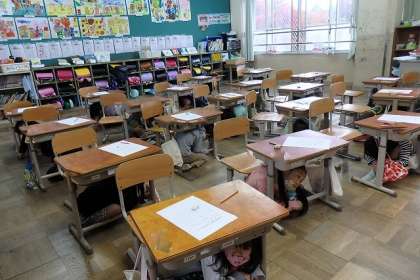 緊急速報の音と校内放送に合わせて,さっと静かになる教室。次の行動もとっても早く行うことができました。